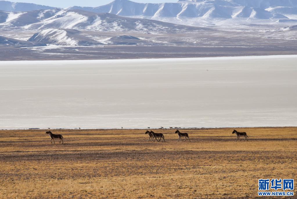 羌塘草原上奔跑的藏野驴。(新华社记者 田金文 摄)