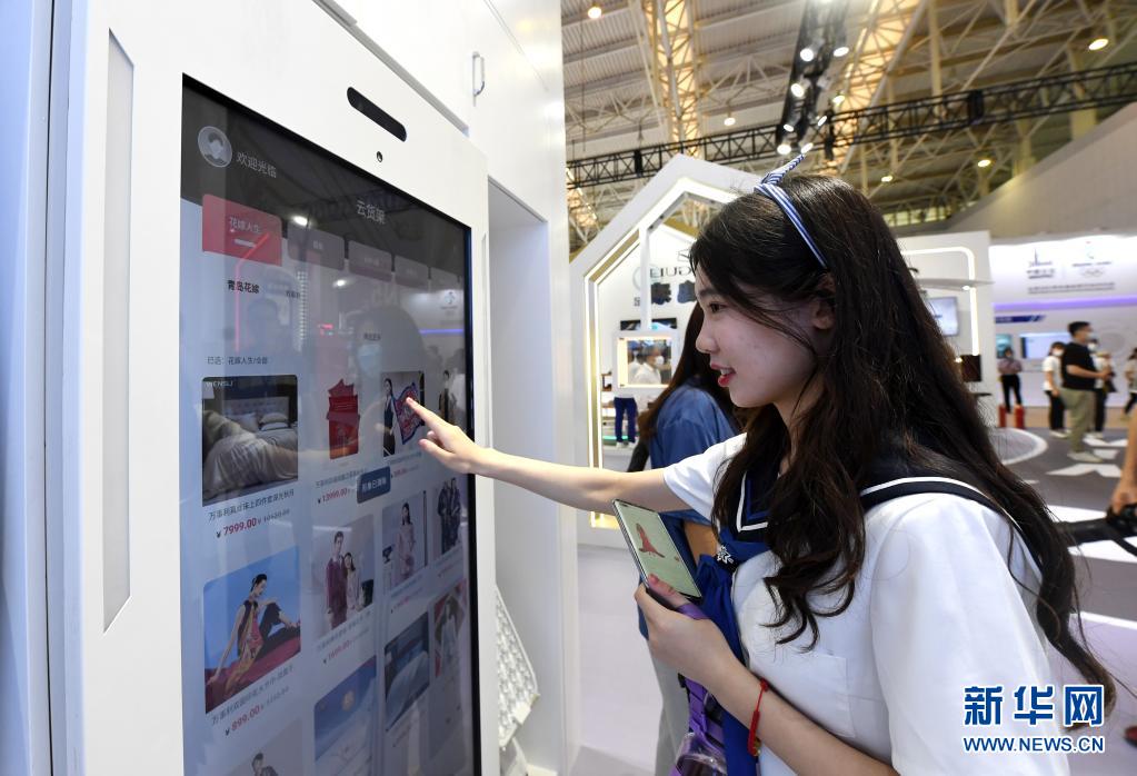 5月23日,在天津梅江会展中心,参观者在体验“3D云镜”。