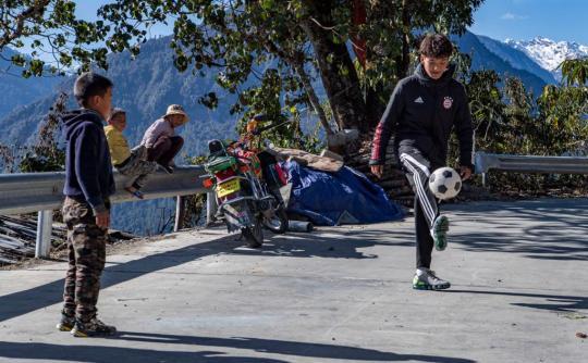 在墨脱县德兴乡巴登则村,孩子们正聚在一起踢球