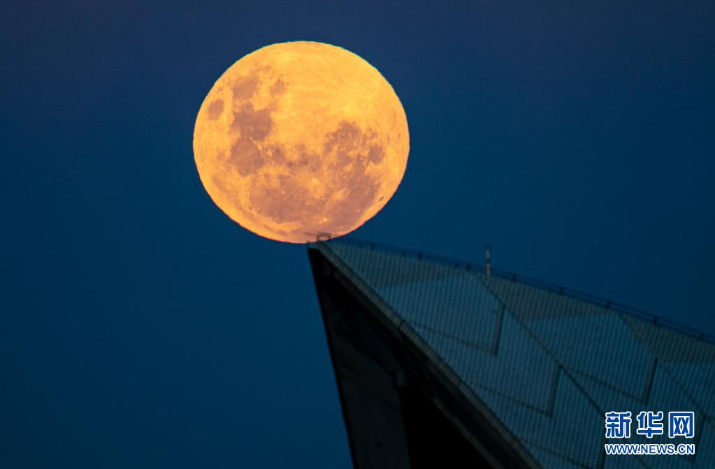 这是5月26日拍摄的澳大利亚悉尼歌剧院一角和刚刚升起的“超级月亮”。