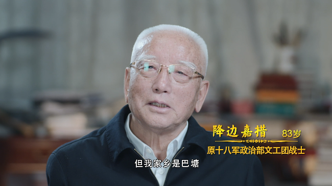 降边嘉措:1950年,解放军到了巴塘。毛主席高瞻远瞩啊,就是从北京就指示,我们人民解放军不是汉人的军队,人民解放军是各族人民自己的军队。我们必须用尽快的速度招一批藏族同志参军,不管他们出身、历史、年龄,性别都不要管,只要愿意参军,我们就动员他们参军,到了我们小学这一边,十二岁也要。