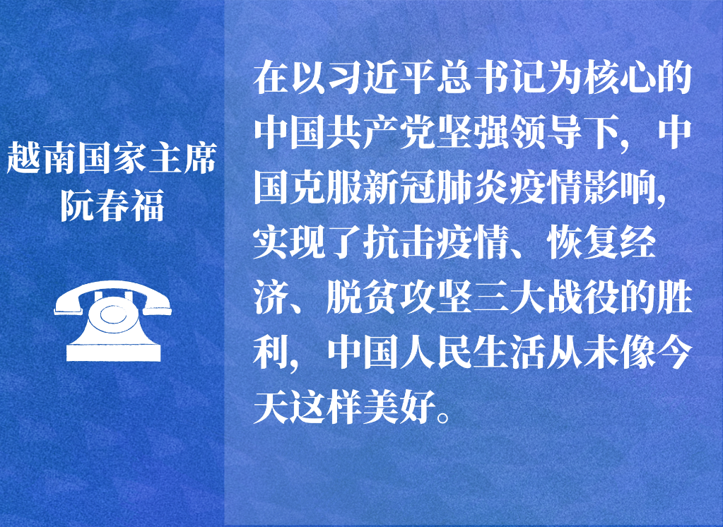 疫情冲击之下,中国脱贫攻坚取得全面胜利,全面建设小康社会取得重大战略性成果,开启全面建设社会主义现代化国家新征程。外方领导人这样点赞中国的发展成就——