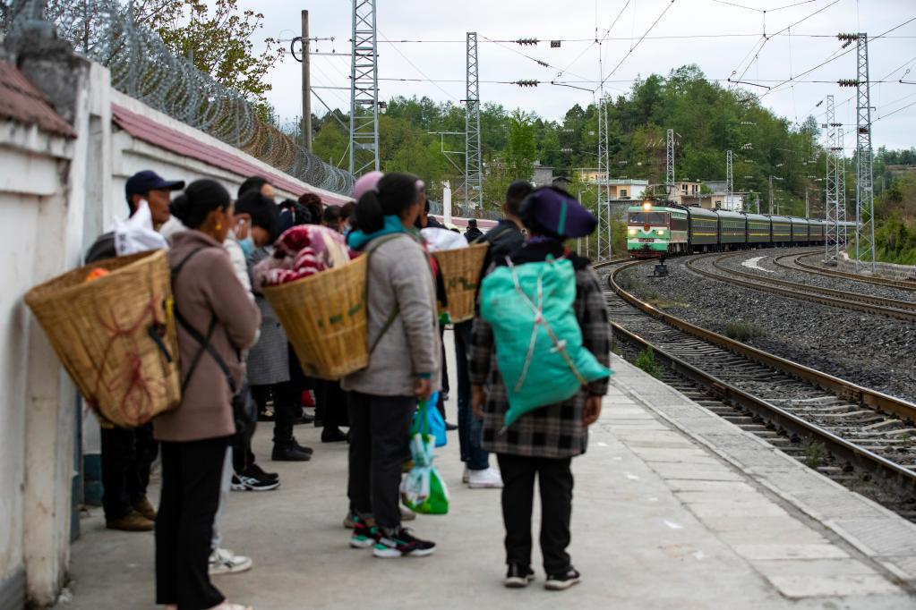 在成昆铁路上普雄站,人们准备乘坐5633次列车出行。新华社记者沈伯韩摄