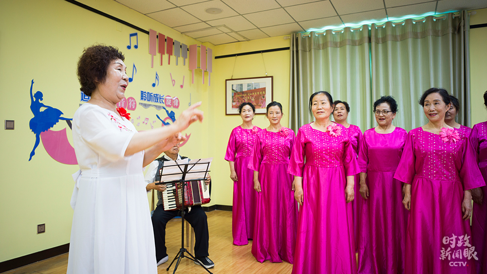 △社区合唱团正在排练,总指挥是66岁的社区居民王红梅。(总台央视记者彭汉明拍摄)