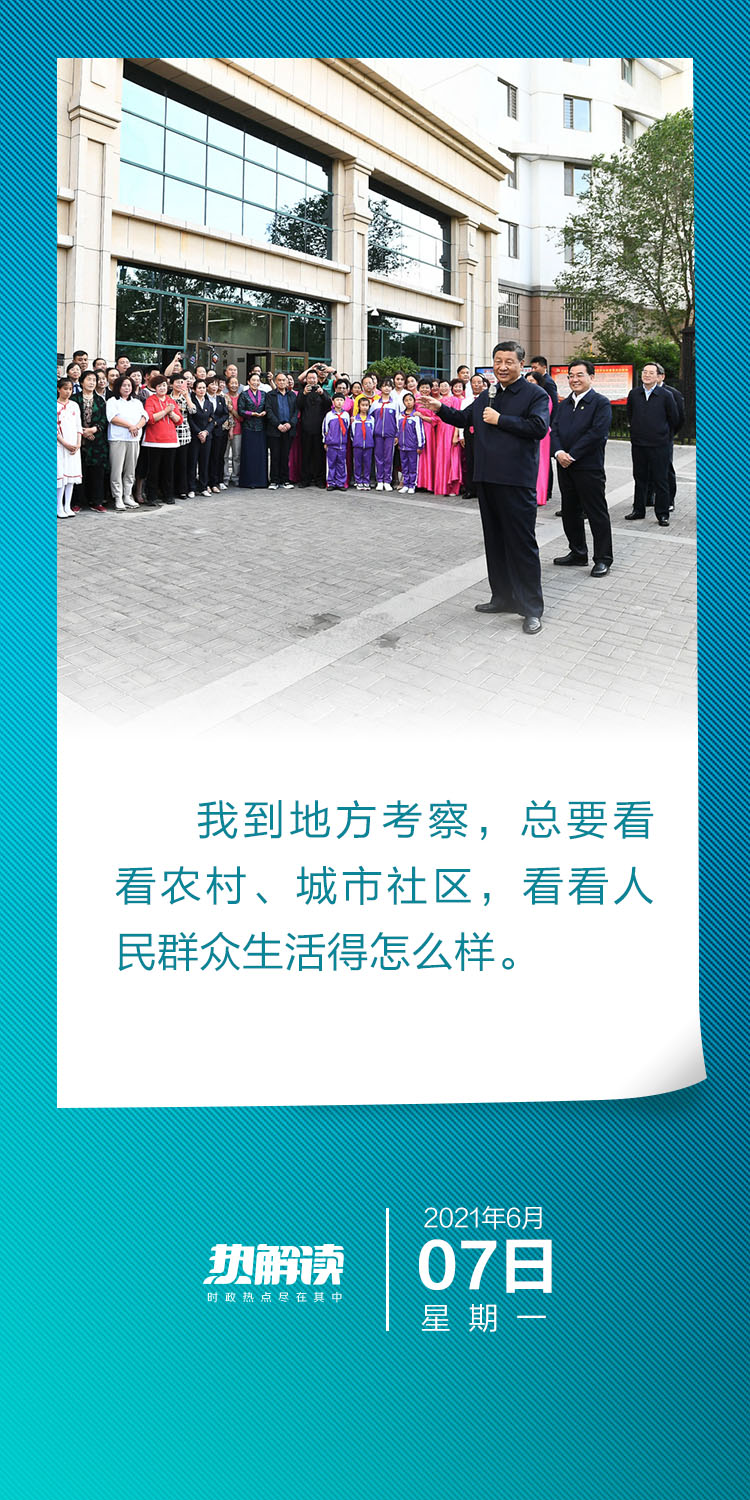 在社区综合服务中心院落里,总书记深情地说:“我到地方考察,总要看看农村、城市社区,看看人民群众生活得怎么样。”