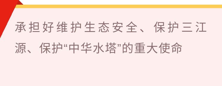青海对国家生态安全、民族永续发展负有重大责任,必须承担好维护生态安全、保护三江源、保护“中华水塔”的重大使命,对国家、对民族、对子孙后代负责。