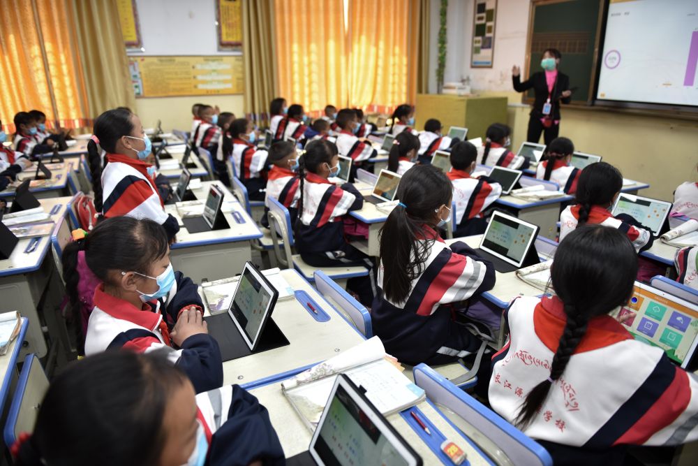 长江源村里建起“长江源民族学校”,各类设施一应俱全。学校不仅开展双语教学,还利用“智慧教育”平台共享优质教学资源。教育上的大变化,预示着孩子们的美好未来。
