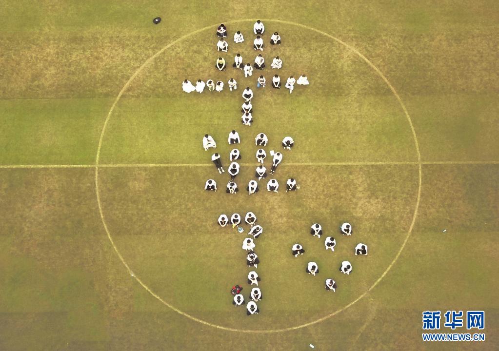 6月9日,焦作市温县一中高三毕业生在校园里摆出“毕业了”字样拍摄毕业照。
