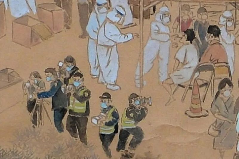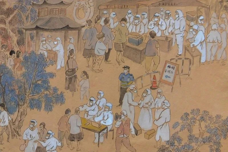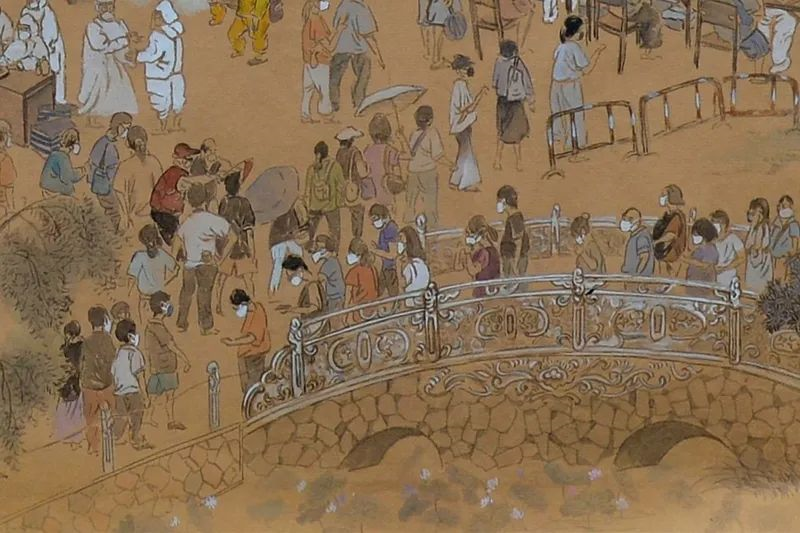 以大规模核酸检测为背景整体风格延续《清明上河图》的表现手法