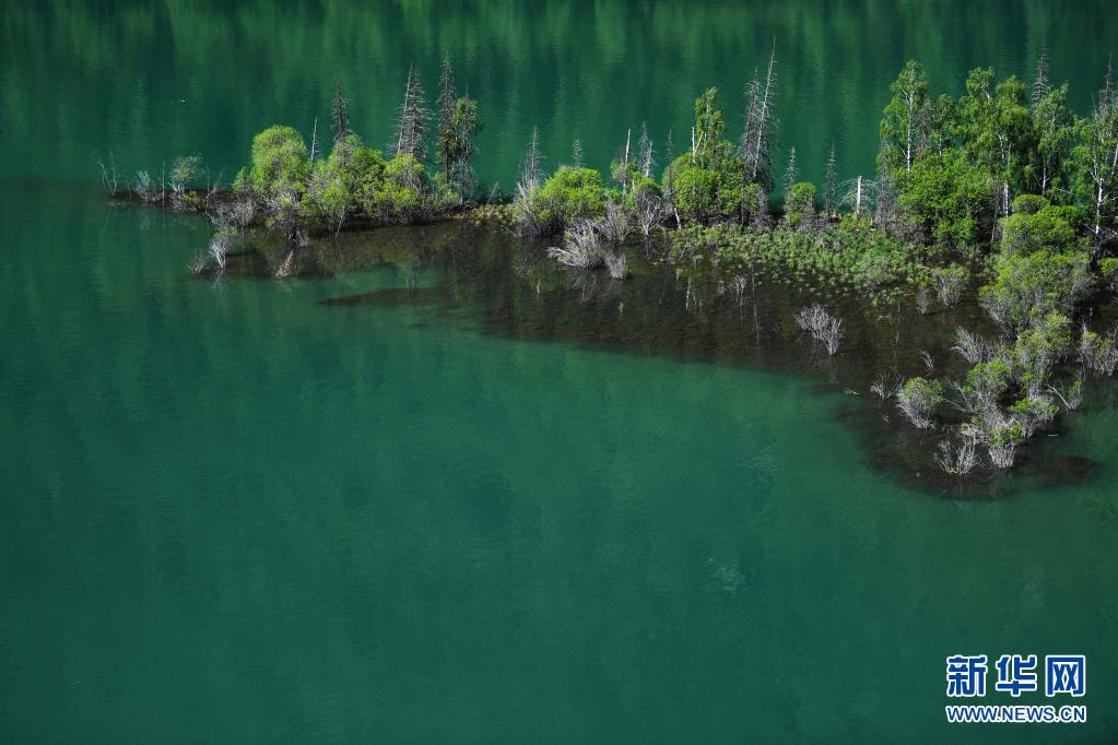 6月10日拍摄的新疆阿勒泰地区喀纳斯景区卧龙湾景色(无人机照片)。