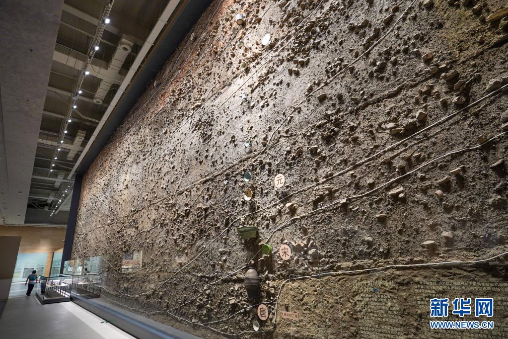 这是扬州中国大运河博物馆内展出的“河南开封州桥遗址汴河剖面”(6月16日摄)。