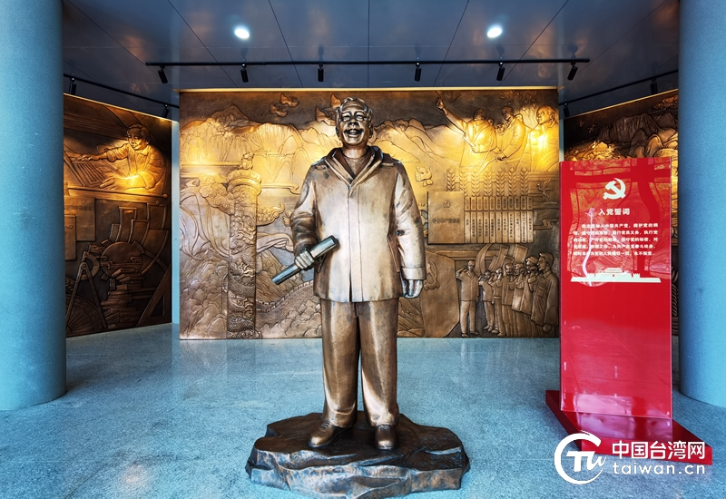 李保国先进事迹展览馆前厅安放的李保国同志的铜像。(中国台湾网 张亚静 摄)