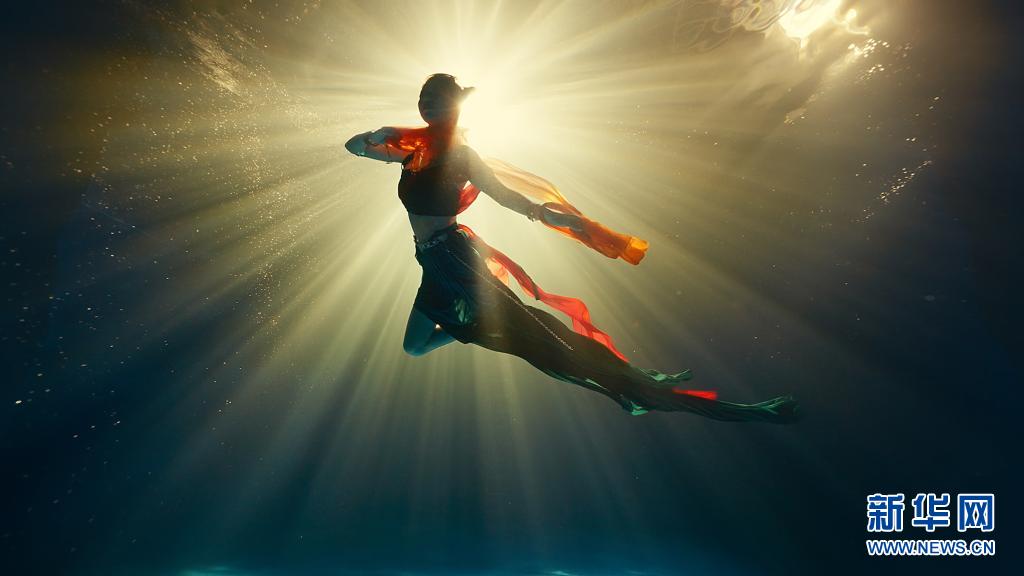 演员演绎水下飞天舞蹈《洛神水赋》(视频截图)。