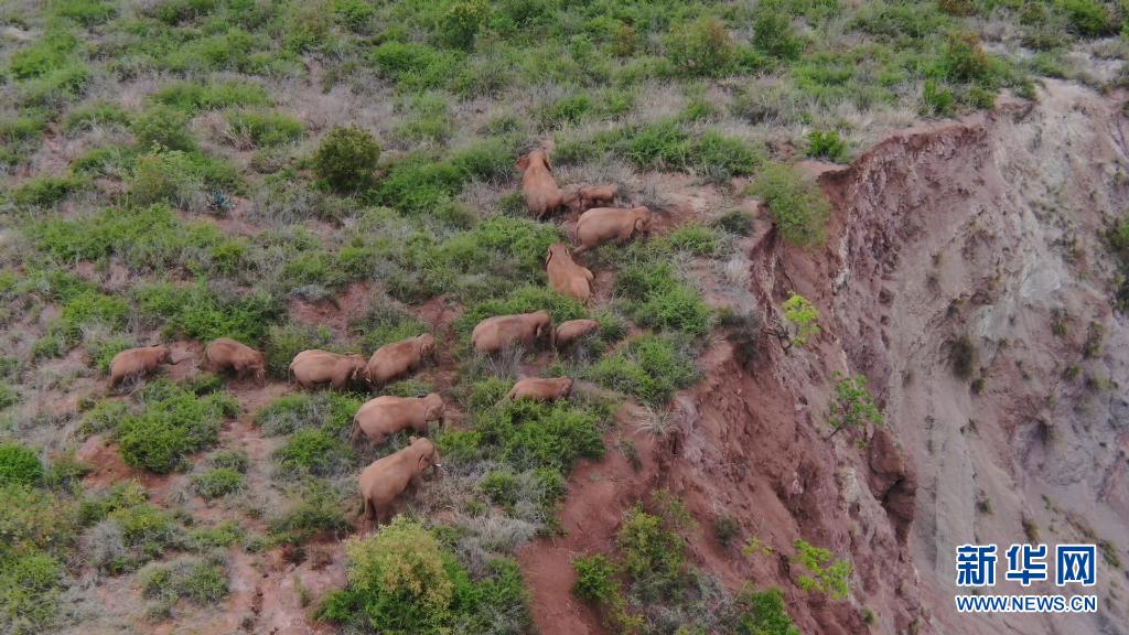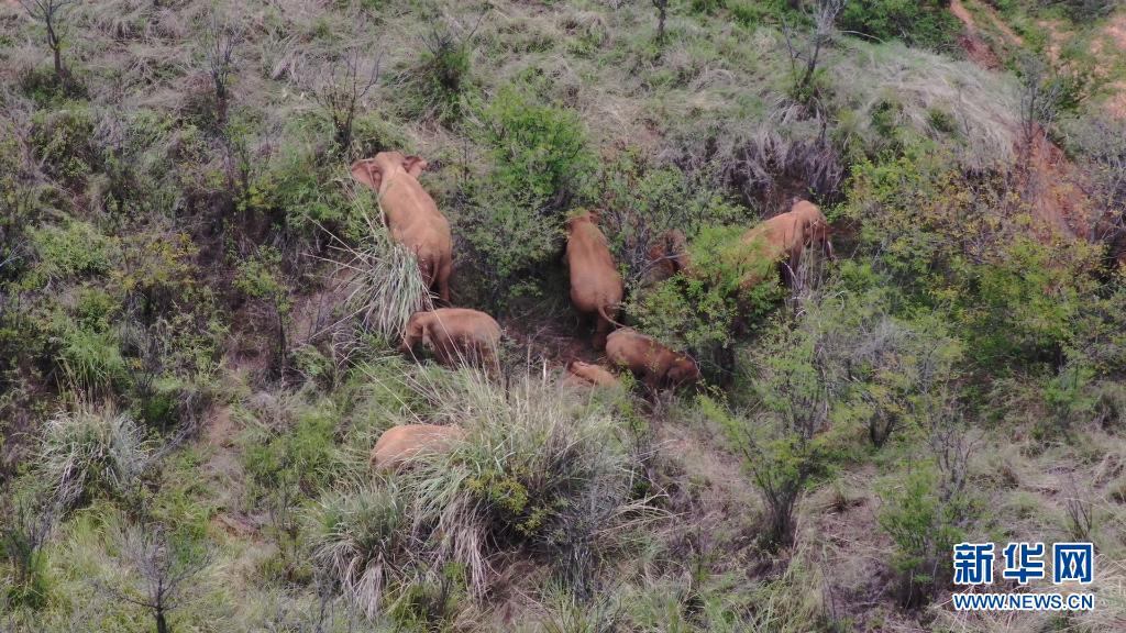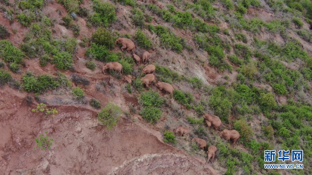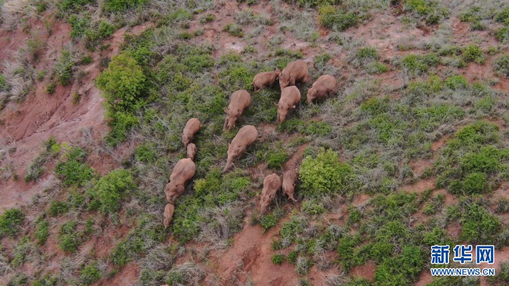 6月18日在玉溪市峨山县境内拍摄的象群(无人机视频截图)。新华社发