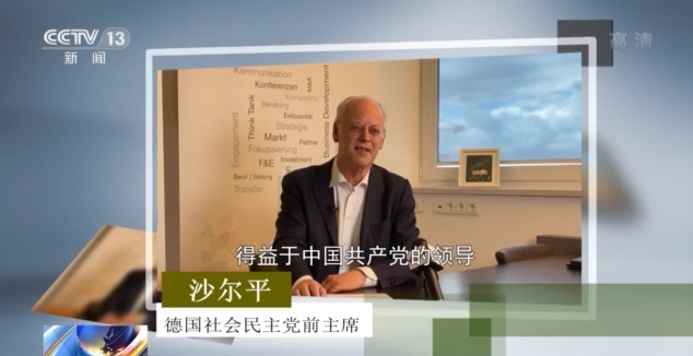 德国社会民主党前主席 沙尔平:得益于中国共产党的领导,中国人民的决心、勤劳和付出,以及中国人民和企业的创新能力,中国取得了史无前例的进步。