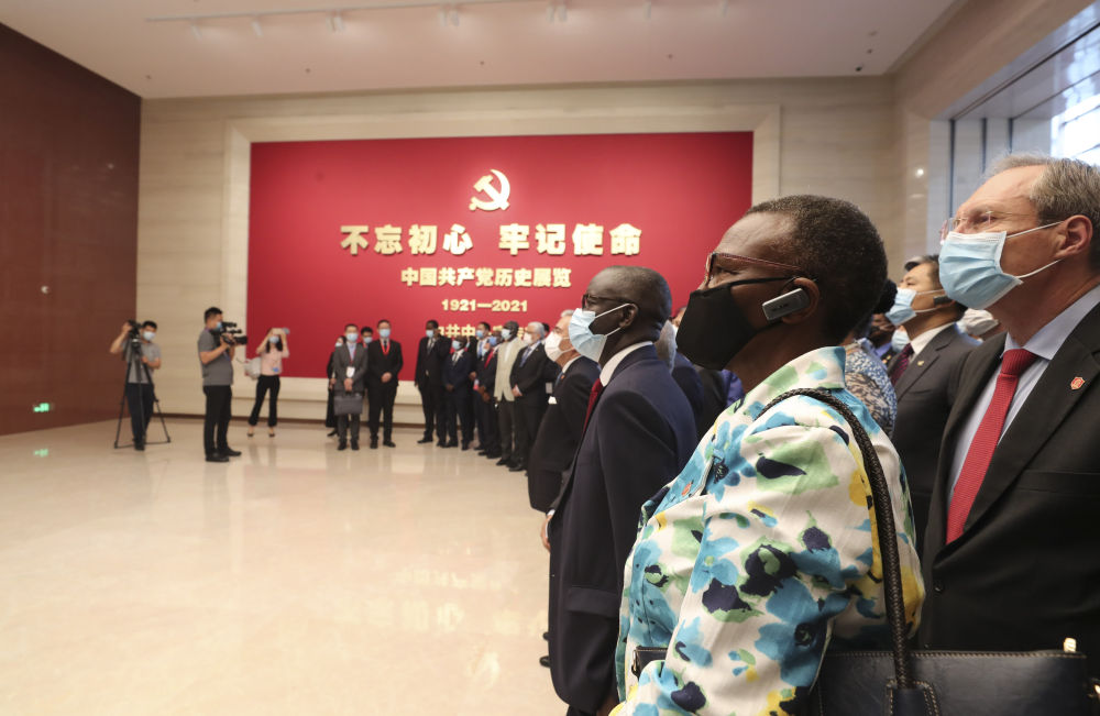 6月24日上午,100多位外国驻华使节和国际组织驻华代表走进新落成的中国共产党历史展览馆,参观“‘不忘初心、牢记使命’中国共产党历史展览”,探寻百年大党的奋斗历程。