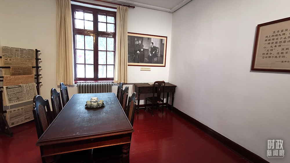 △李大钊常在办公室与进步青年共同讨论、研究各种新思潮。1920年还在此会见共产国际代表维经斯基,研究酝酿成立共产党。(总台央视记者李晓周拍摄)