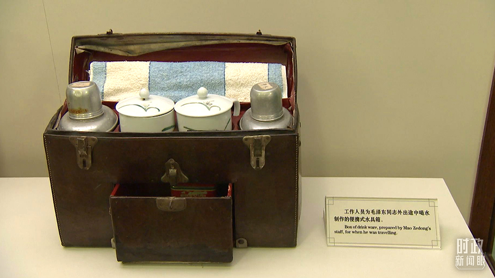 △这是工作人员为毛泽东外出途中喝水制作的便携式水具箱,现陈列在丰泽园毛泽东同志故居。(总台央视记者石伟明拍摄)
