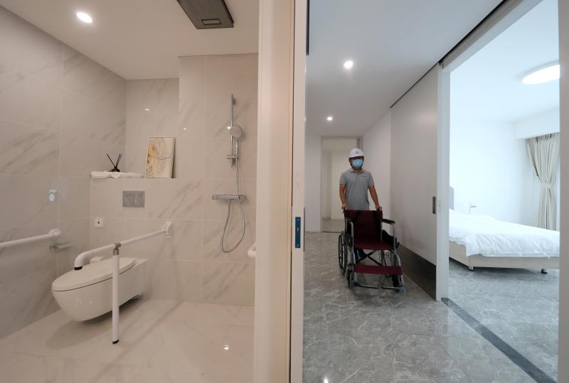 工作人员展示北京冬奥村无障碍建设情况。图片来自北京市重大项目办