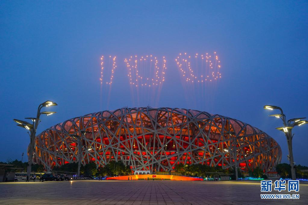 6月28日晚,庆祝中国共产党成立100周年文艺演出《伟大征程》在国家体育场盛大举行。这是焰火盛放在国家体育场上空。新华社记者 彭子洋 摄