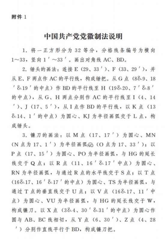 图表:《中国共产党党徽党旗条例》附件1:中国共产党党徽制法说明(1) 新华社发