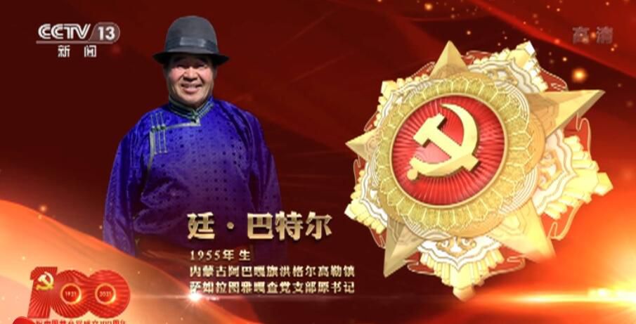 廷·巴特尔,蒙古族,内蒙古呼和浩特人,1976年11月入党。他是扎根牧区、苦干实干的楷模,凭着“让牧民过上好日子”的信念,扎根牧区近50年,探索出保护生态、发展经济、促进增收新路子,使当地牧民生产生活发生翻天覆地的变化。先后荣获“全国优秀共产党员”、“全国劳动模范”、“全国民族团结进步模范个人”、“改革先锋”等称号。