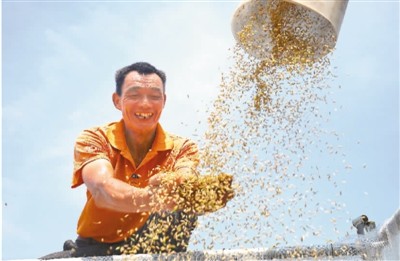 图为江西省抚州市乐安县戴坊镇横江村村民的早稻丰收,喜笑颜开。