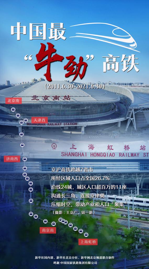 新华社北京6月30日电(记者樊曦、丁静)30日,京沪高铁迎来运营10周年。10年间,京沪高铁在中国高铁发展史上创造多项成绩,飞驰出一道亮丽轨迹。