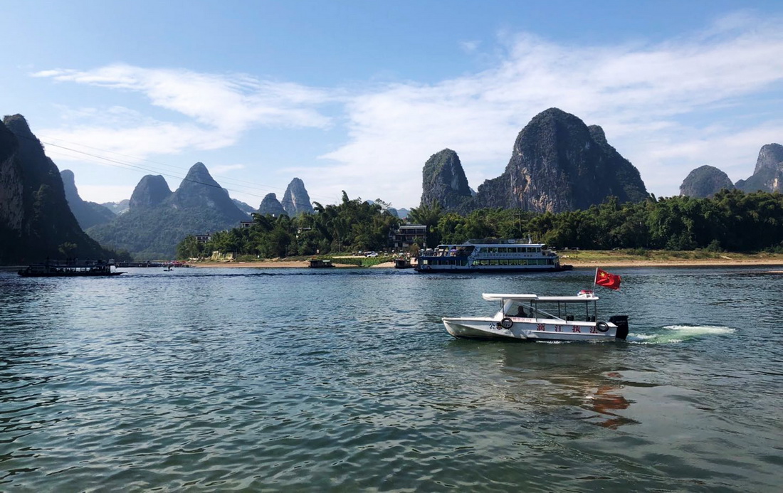 执法船在漓江上巡查(2019年11月14日摄)。新华社记者 卢羡婷 摄