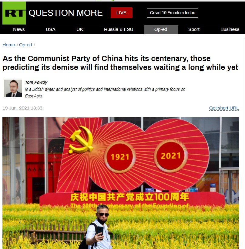 中国日报网7月2日电 近日,英国国际关系专家汤姆·福迪在今日俄罗斯网站(RT)刊文称,西方一些思想家对中国道路的否定源于其长期意识形态偏见,历史证明,中国共产党有足够的能力克服每一次挑战。