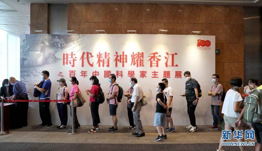 两天休馆后,“时代精神耀香江”之百年中国科学家主题展暨月壤展览2日重新向香港公众开放。恰逢中国共产党成立100周年和香港回归祖国24周年,香港会展中心比以往更加热闹。