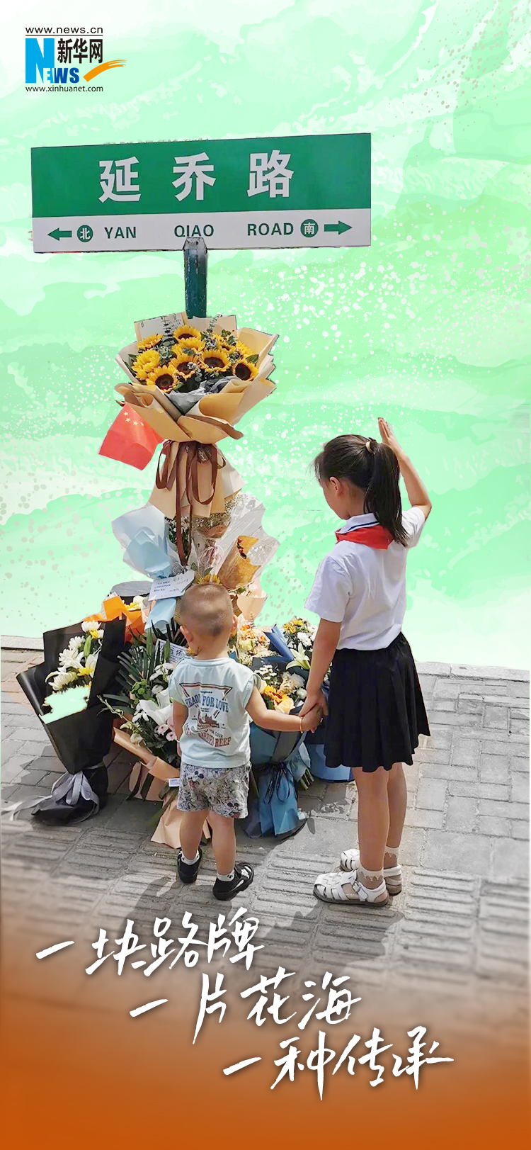 这是一片满怀思念和祝福的花海。“延乔路虽短,但尽头却是繁华大道。这短短的路途,却经历了一百年的艰苦奋斗。这盛世,如你们所愿,这盛世,我们会是你们的双眼,替你们看遍”“于乱世探索真理,在至暗时刻寻找光明,虽千万人往矣!”“岁月悠长,山河已无恙;硝烟散尽,尽是曙光”……一字一句,纸短情长,寄托着我们对革命先烈的缅怀之情和敬仰之意。