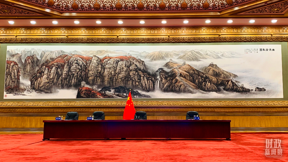△北京人民大会堂,视频峰会开始前的会场。(总台央视记者范一鸣拍摄)