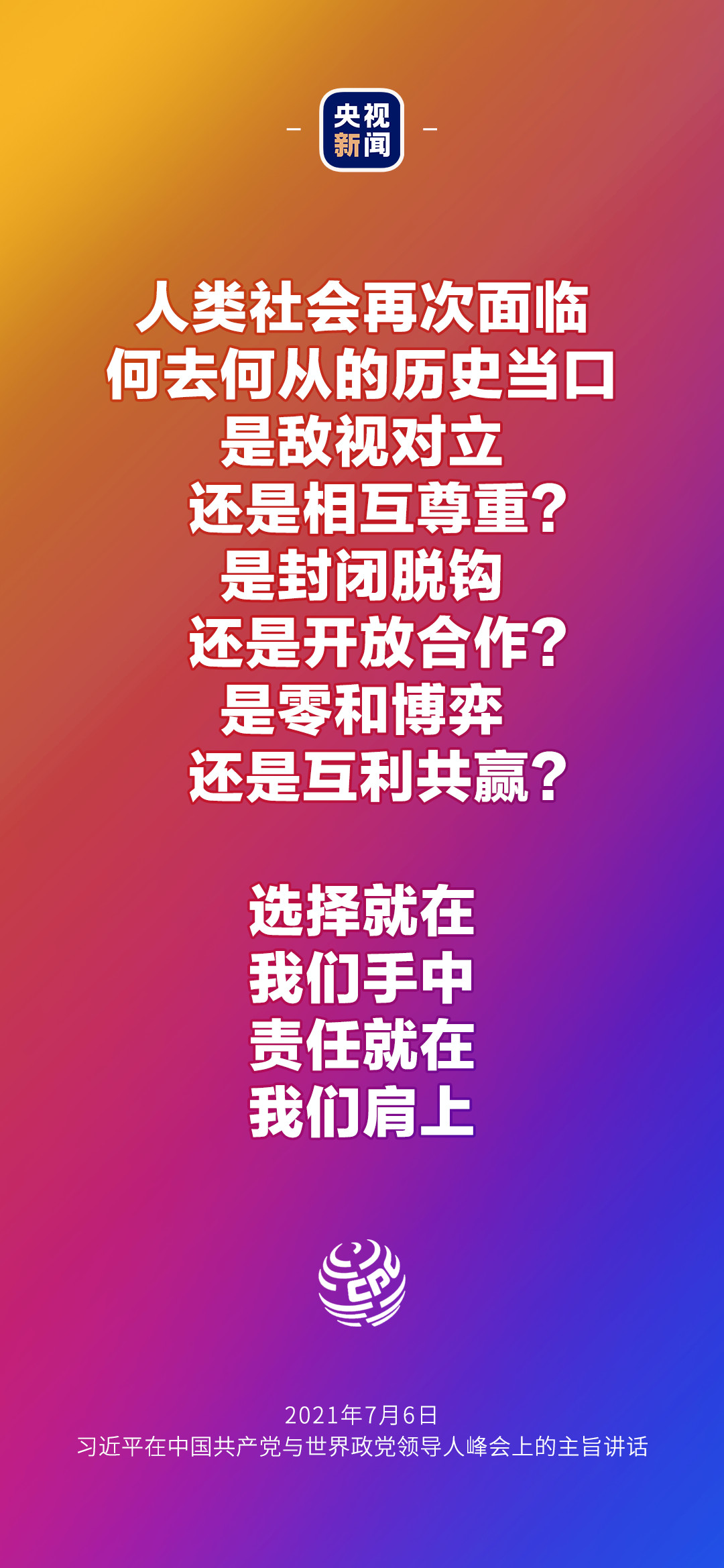 6日晚,中国共产党与世界政党领导人峰会以视频连线方式举行,160多个国家的500多个政党和政治组织的领导人以及逾万名政党代表出席了会议。中共中央总书记、国家主席习近平在北京出席会议并发表主旨讲话,讲话向世界传递了哪些中国声音?看梳理→