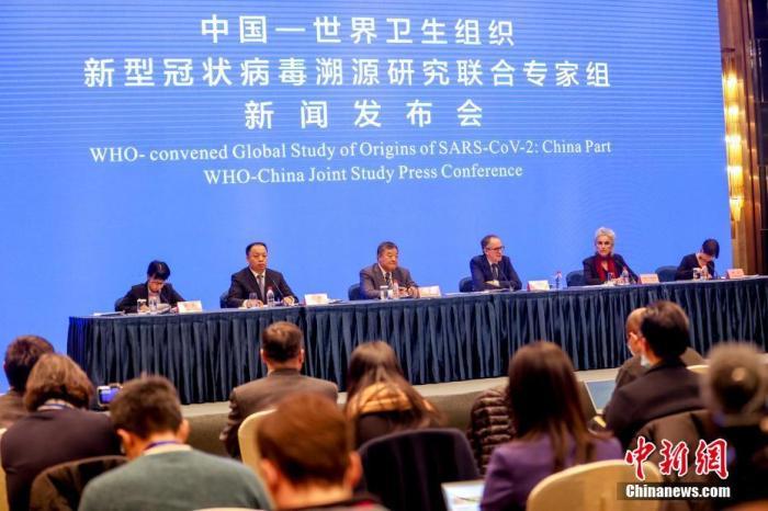 2月9日,中国-世卫组织新冠溯源研究联合专家组在武汉举行新闻发布会,通报共同开展新冠病毒全球溯源中国部分的工作情况。图为新闻发布会现场。 中新社记者 张畅 摄