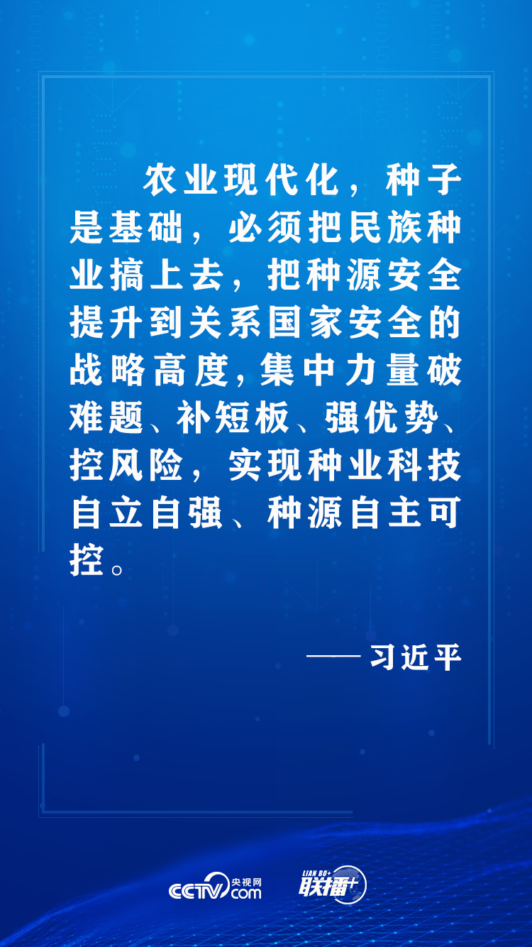 ●要加强基础性前沿性研究,加快实施农业生物育种重大科技项目,开展种源关键核心技术攻关,扎实推进南繁硅谷等创新基地建设。