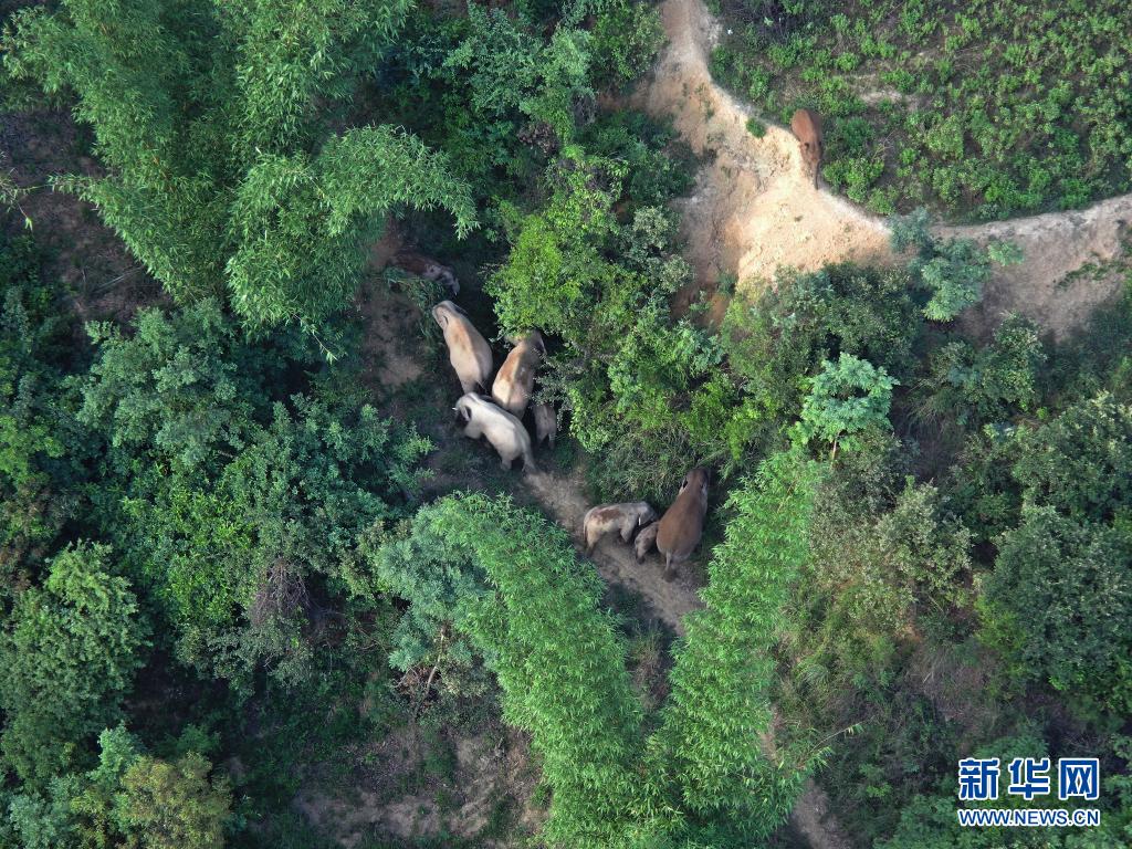 云南北移亚洲象群从玉溪市新平县进入红河州石屏县