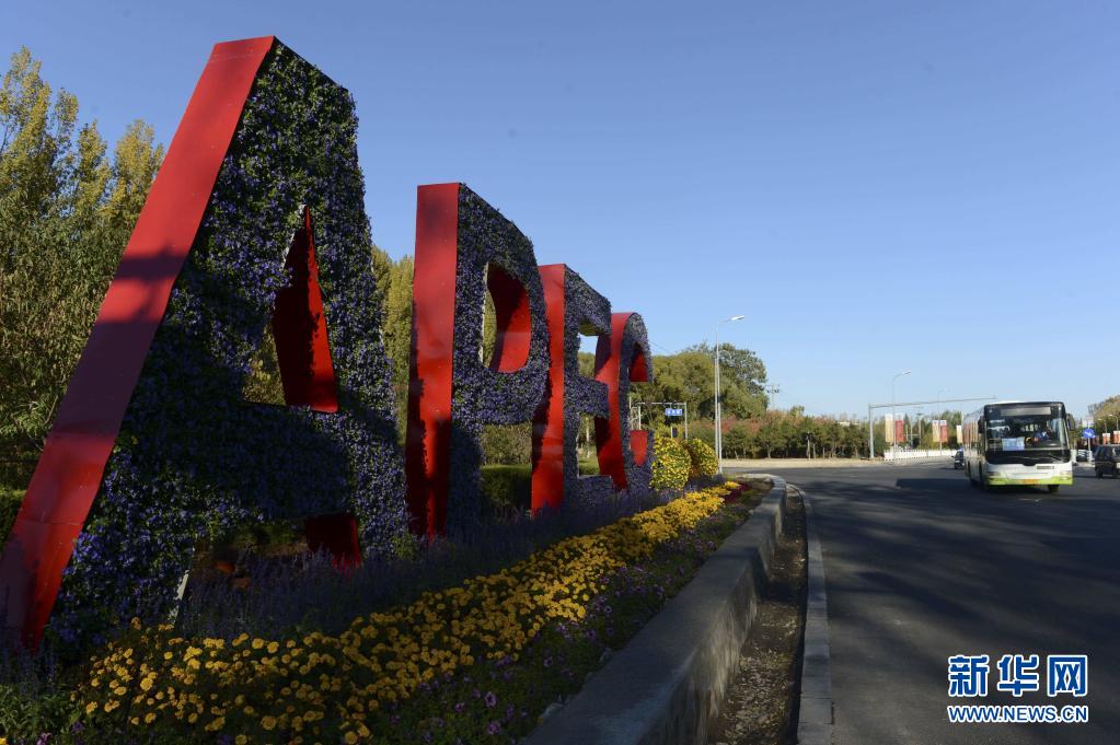 北京怀柔雁栖湖周边APEC主题景观(2014年11月2日摄)。新华社记者 马宁 摄