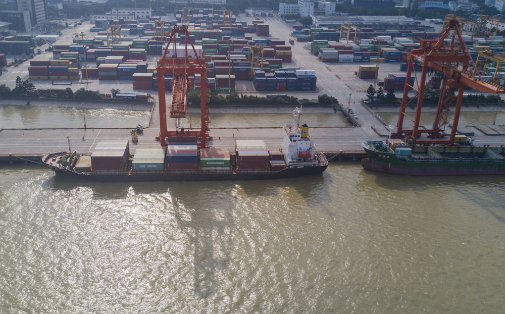 2021年6月3日,集装箱货轮停靠在中国(福建)自由贸易试验区福州青州集装箱码头(无人机照片)。新华社记者 宋为伟 摄