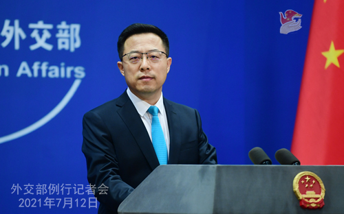 赵立坚表示,中方始终积极落实习近平主席关于将疫苗作为全球公共产品的重要宣示,秉持人类命运共同体理念,本着开放包容的原则对外提供疫苗。截至目前,中国已向全球100多个国家和国际组织提供了5亿多剂新冠疫苗和原液,相当于当前全球新冠疫苗总产量的六分之一。中国企业为世界卫生组织主导的“新冠肺炎疫苗实施计划”(COVAX)生产的疫苗也已下线,将尽快向世卫组织提供。
