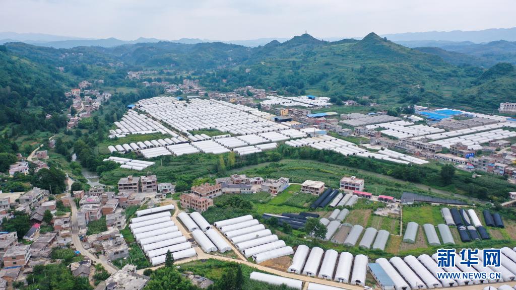 这是7月16日在贵州省毕节市纳雍县寨乐镇拍摄的红托竹荪种植基地(无人机照片)。新华社记者 杨焱彬 摄