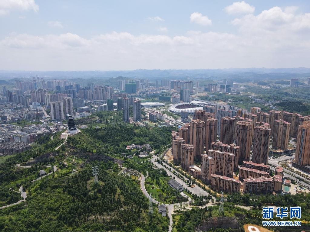 这是7月14日拍摄的贵州省黔西市凤凰山公园(无人机照片)。新华社记者 徐钦 摄