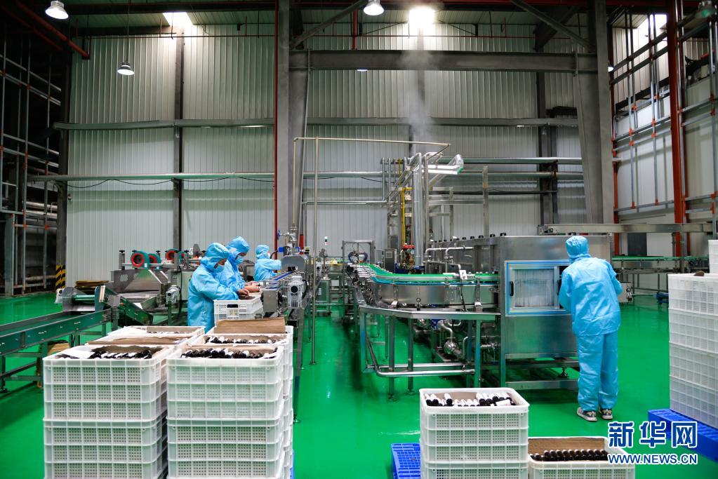 在贵州水城经济开发区,贵州初好农业科技开发有限公司的工作人员在刺梨口服液生产线上忙碌(7月17日摄)。新华社记者 徐钦 摄