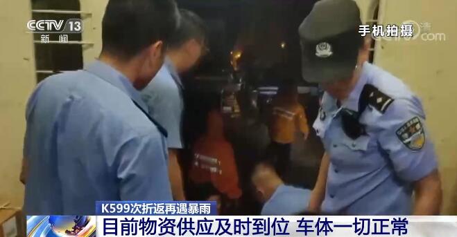 K599次折返再遇暴雨 目前物资供应及时到位、车体一切正常