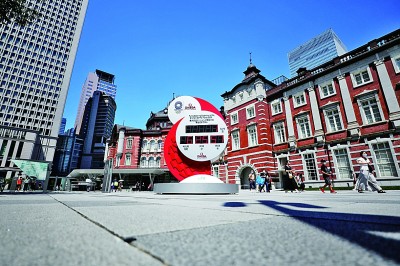 图为7月22日在东京车站前的广场上拍摄的东京奥运会倒计时电子时钟。新华社发