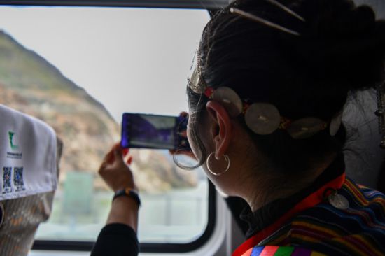 复兴号列车上的乘客用手机记录沿途风景。(2021年6月25日摄)新华社记者 晋美多吉 摄