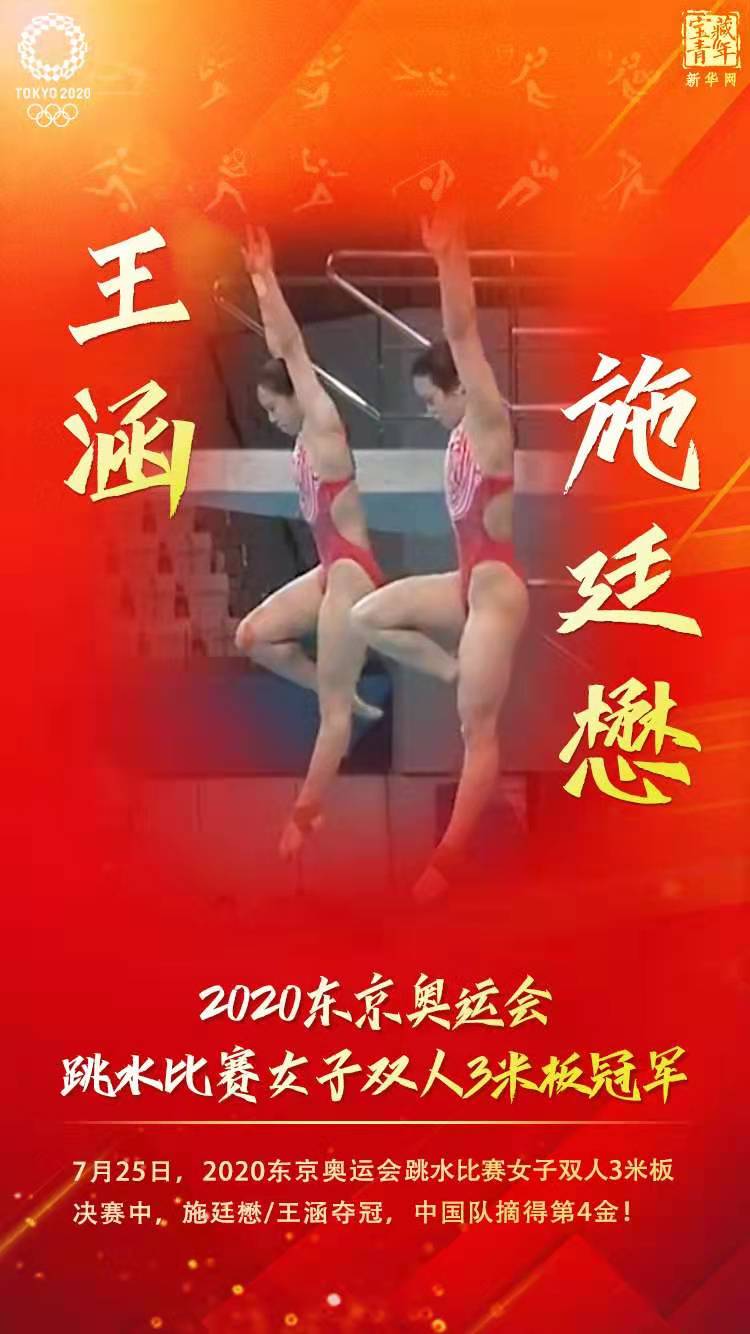 快讯:中国组合施廷懋/王涵夺得东京奥运会女子双人3米跳板冠军。