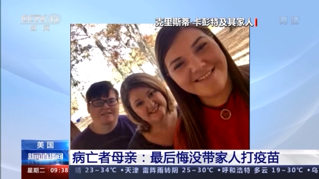 一位来自亚拉巴马州的母亲克里斯蒂·卡彭特接受《华盛顿邮报》采访时表示,由于没有及时接种新冠疫苗,她自己和她一对儿女在今年3月份都感染了新冠病毒,在5月的时候,她28岁的儿子不幸去世。她说,没带领家人接种疫苗是自己“最后悔”的事情。如果她的儿子还活着,现在也一定会主张尽快接种疫苗。