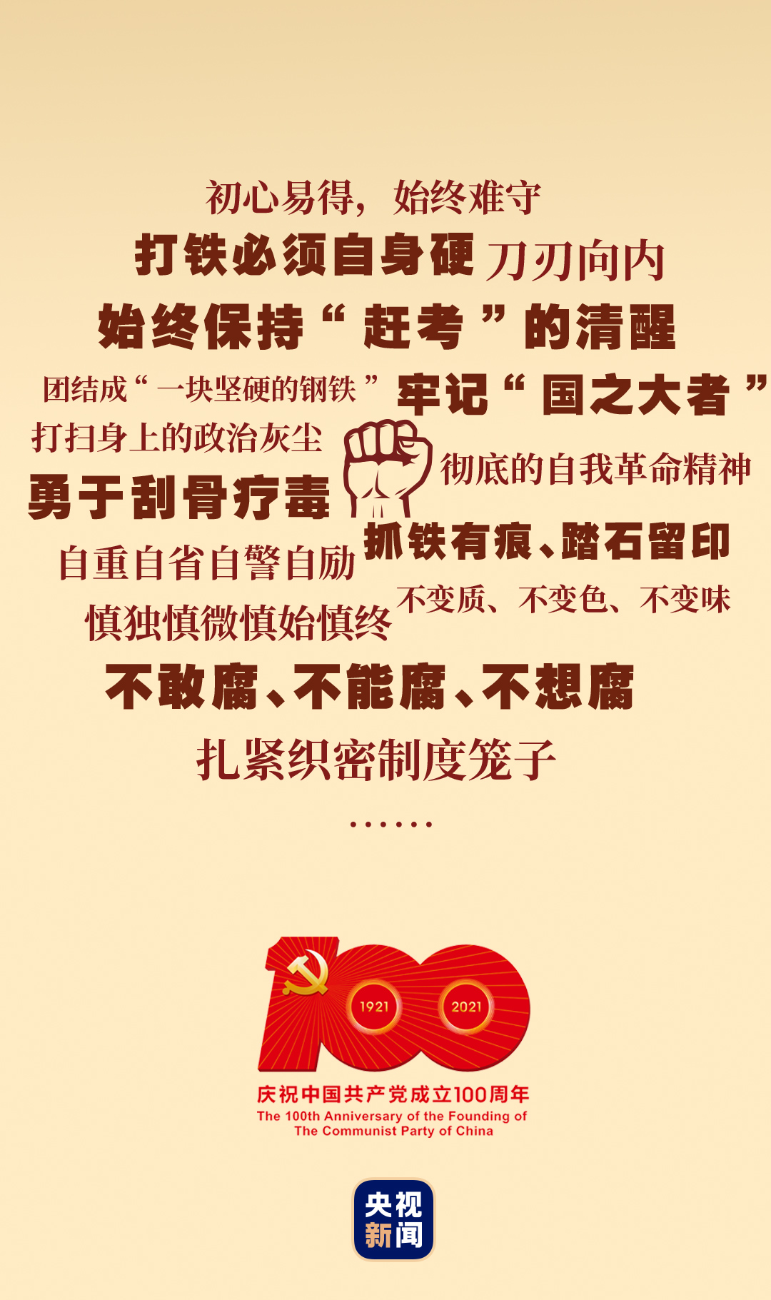 “我们党历经千锤百炼而朝气蓬勃,一个很重要的原因就是我们始终坚持党要管党、全面从严治党,不断应对好自身在各个历史时期面临的风险考验,确保我们党在世界形势深刻变化的历史进程中始终走在时代前列,在应对国内外各种风险挑战的历史进程中始终成为全国人民的主心骨!”