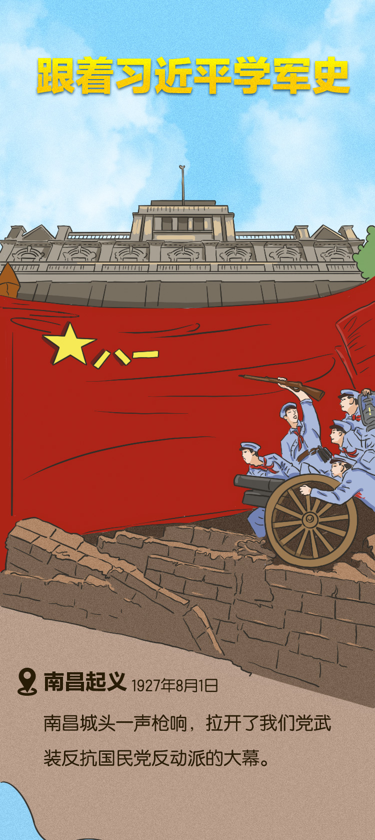 联播+ 1927年8月1日,南昌城头的一声枪响划破了漫漫黑夜,打响了武装反抗国民党反动派的第一枪,一支誓为中华民族而战的队伍就此诞生。南昌起义连同秋收起义、广州起义以及其他地区的武装起义,标志着中国共产党独立领导革命战争、创建人民军队的开端。